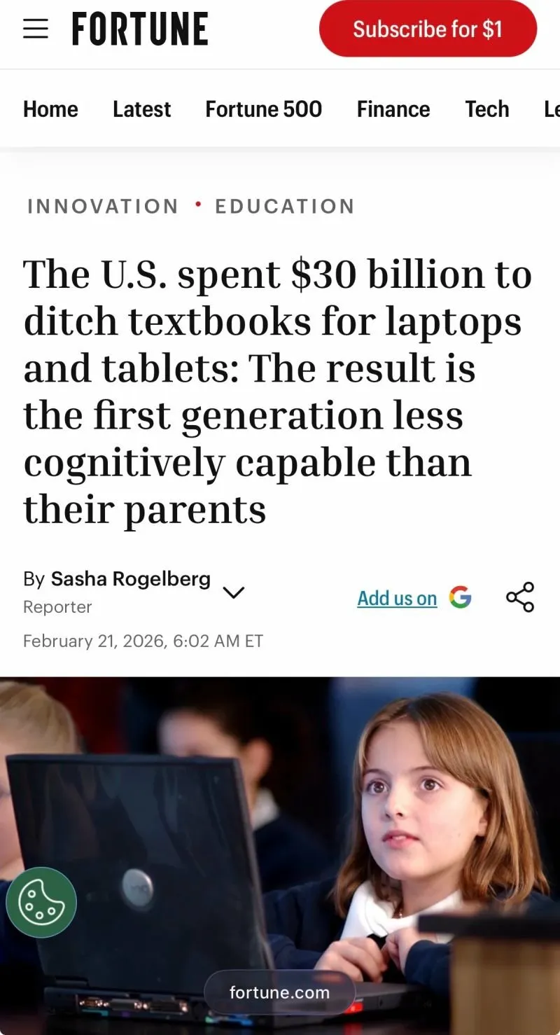 The numbers should make every American parent furious. The United States poured more than $30 billion in 2024 alone into putting laptops and tablets in K-12 classrooms, continuing a multi-decade experiment that was supposed to modernize education and catapult American students to the top of global rankings. Instead, neuroscientists and learning experts now have a damning verdict: we produced the first generation in modern history to be less cognitively capable than their parents.