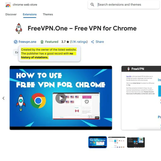 The next time you see a Chrome extension with Googleâs verification badge, remember FreeVPN.One. That badge might not be protecting youâit might be the very thing putting you at risk.