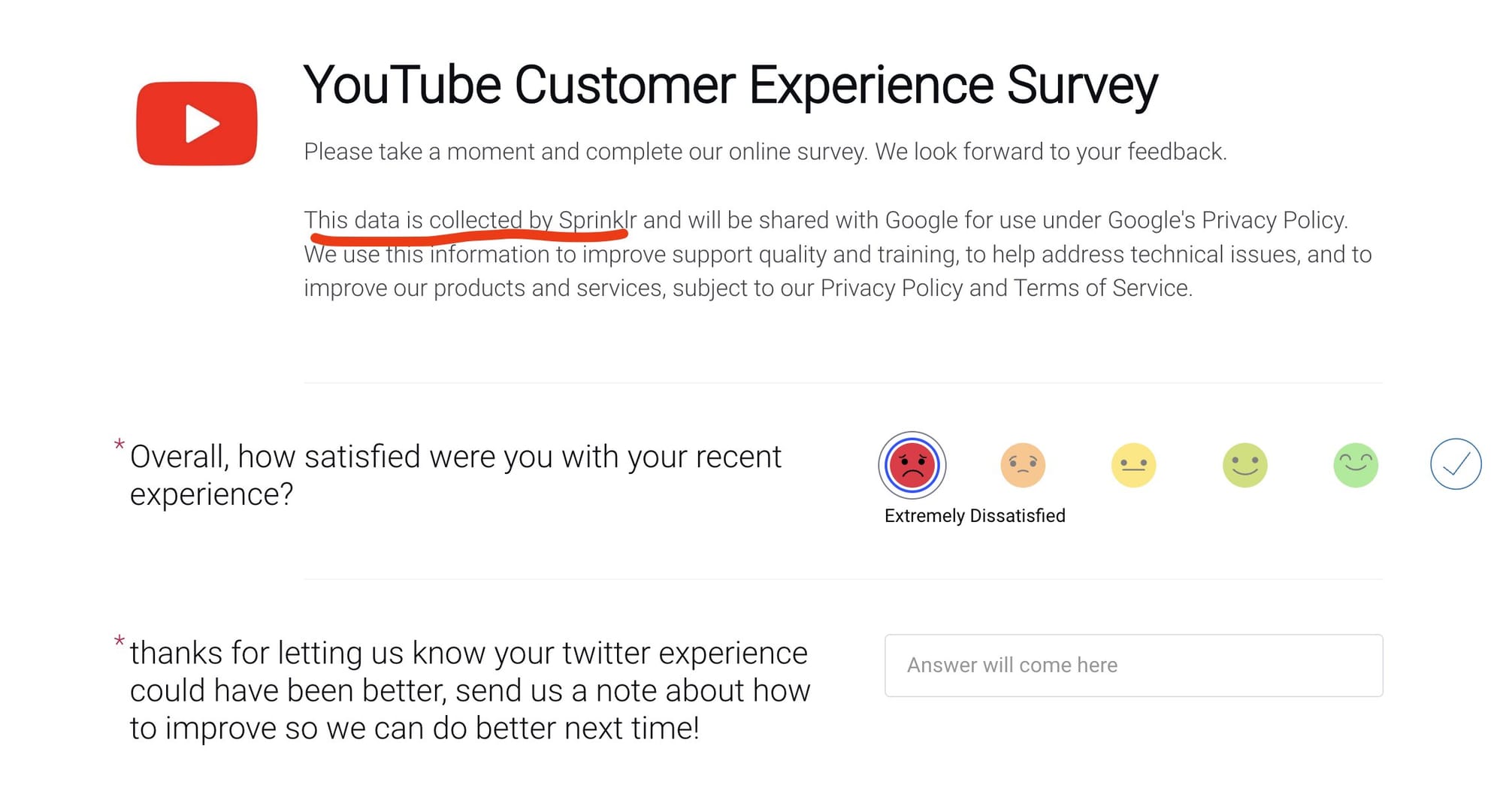 This is where YouTubeâs lie became undeniable. Creators who analyzed their communication metadata discovered that @TeamYouTubeâs âmanualâ responses were coming from Sprinklrâan AI-powered automated customer service platform.