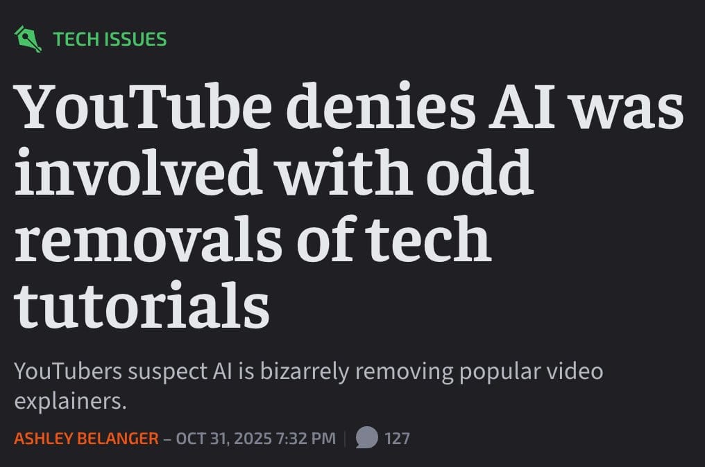 After days of mounting pressure, YouTube admitted to using AI for handling creator appeals and customer support on November 10, 2025. But the admission came with heavy spin: